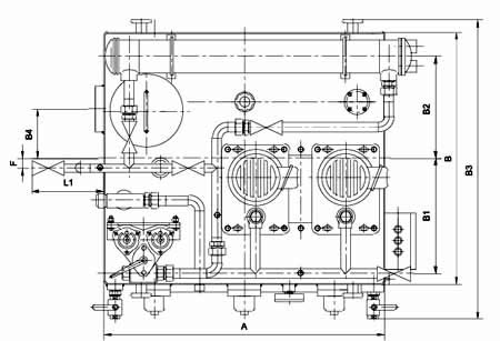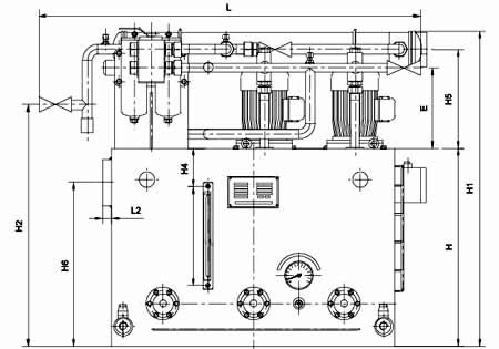 ≥250L/min稀油站,采用蒸汽加热油箱中的润滑油,仪表盘尚多一检测冷却器进出水管压差的仪表,其主要部件均另外装于基础上;而≤125L/min稀油站的全部部件都装在油箱上,为整体式结构。