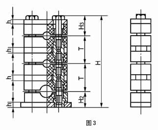 1.2.1 B 型系列Ⅰ型组合安装夹的型式和尺寸见图3 和表3。