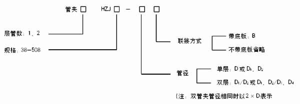5、根据管子上下排列的层数不同,同一规格的管夹有单层和双层两种,如排列需超出双层以上的层数时,订货时请提出,上层管夹数量应等于或小于下层管子数。