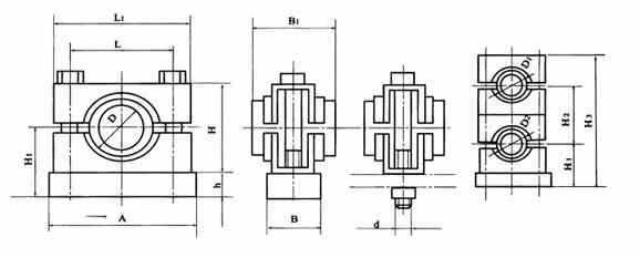 4、根据水平排列固定管子的数量不同,每种规格有两类管夹,即单管夹和双管夹,根据管夹与基面(支架)或机体连接方式不同,每种规格的管夹有带底板和不带底板两种。