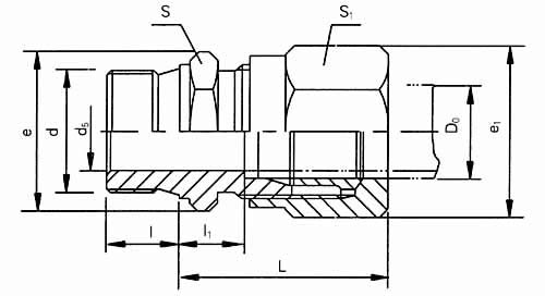 公称压力J级,管子外径D0为14mm的卡套式端直通管接头: